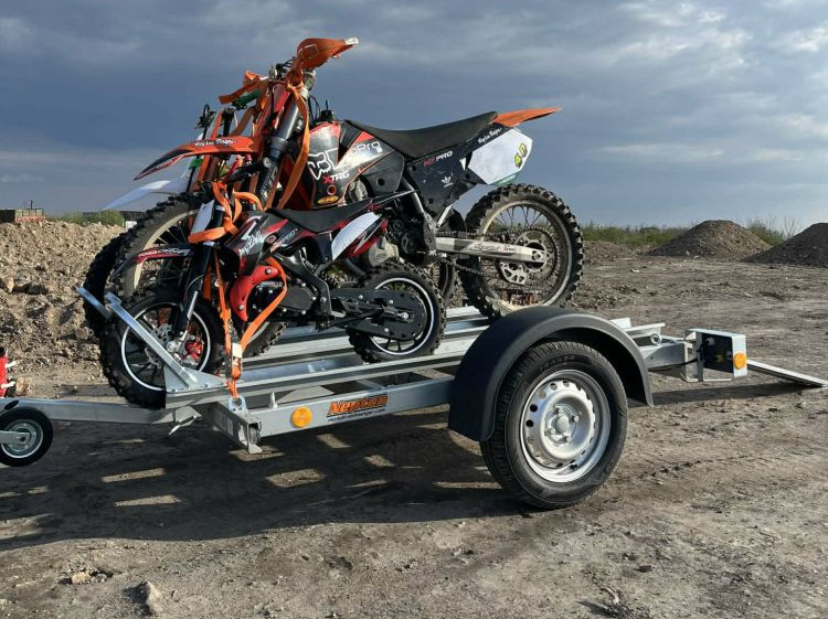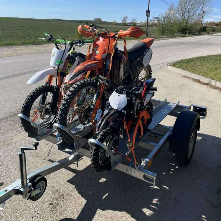 A motorszállító utánfutó kialakítása megfelel a biztonságos közúti használat követelményeinek, és alkalmas akár 3 motorkerékpár szállítására is.